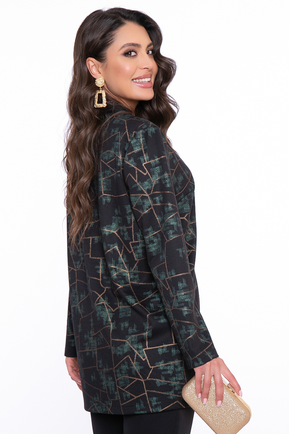 - Принт: изумрудно-золотая абстракция;